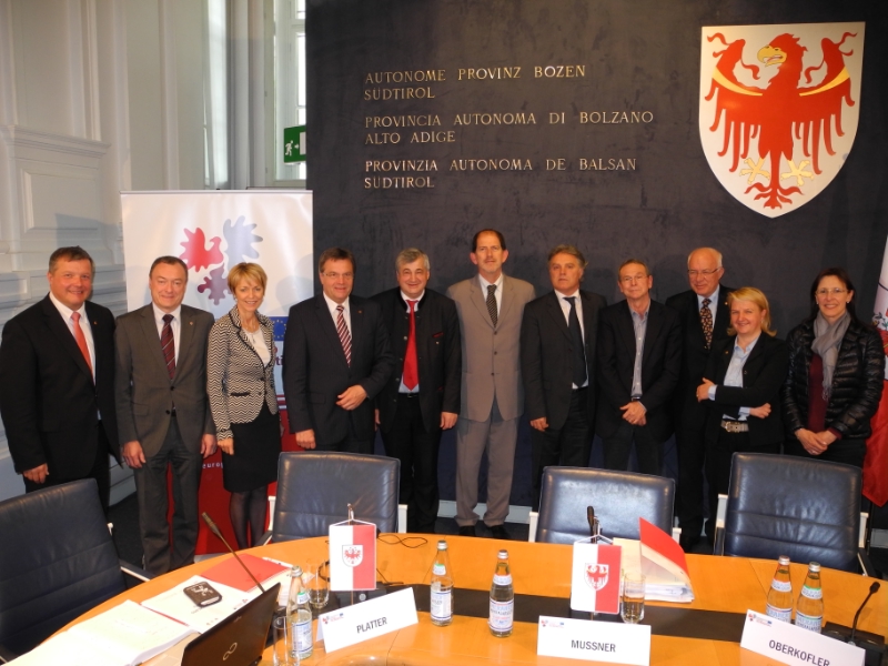 Die zwölfköpfige Versammlung des EVTZ "Europaregion Tirol-Südtirol-Trentino", der die jeweilige Landeshauptleute, drei Landesräte, die drei Landtagspräsidenten und drei Abgeordnete angehören, ist heute in Bozen zusammengekommen, um über das abgelaufene erste Tätigkeitsjahr Bilanz zu ziehen, die Projekte für 2013 vorzustellen und einen Ausblick auf 2014 zu werfen. Landeshauptmann Luis Durnwalder, der als Präsident der EVTZ vorsteht, konnte wegen einer Dienstreise nach Rom nicht an der Vollversammlung teilnehmen und wurde durch Landesrat Florian Mussner vertreten.