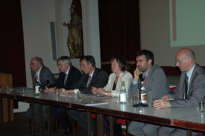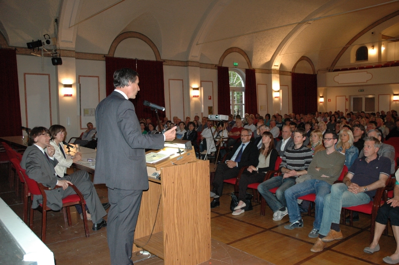 Im restlos gefüllten Kalterer Vereinssaal wurde gestern (4. Juni) eine neue Ära öffentlicher Mobilität eingeläutet: jene des Metrobusses. Die Landesräte Thomas Widmann und Florian Mussner haben den Kalterern das neue Konzept vorgestellt, das eine Lösung für das Pendlerproblem im Großraum Bozen-Überetsch bringen soll - durch strikte Vorfahrt für den Bus.
