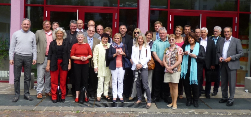 29 Schulaufsichtsbeamte aus dem bayrischen Regierungsbezirk Mittelfranken besuchten in den vergangenen Tagen Südtirols Schulwelt. Begrüßt wurden die deutsche Delegation am Montag (3. Juni) in der Fortbildungsakademie Schloss Rechtenthal in Tramin von Monika Oberhofer, der Leiterin der Akademie, und von Rudolf Meraner, dem Koordinator für den Bereich Innovation und Beratung am Deutschen Bildungsressort. Schwerpunkte der gemeinsamen Gespräche bildeten dabei Fragen der Lehrerfortbildung und der Mehrsprachigkeit des Südtiroler Schulwesens.
