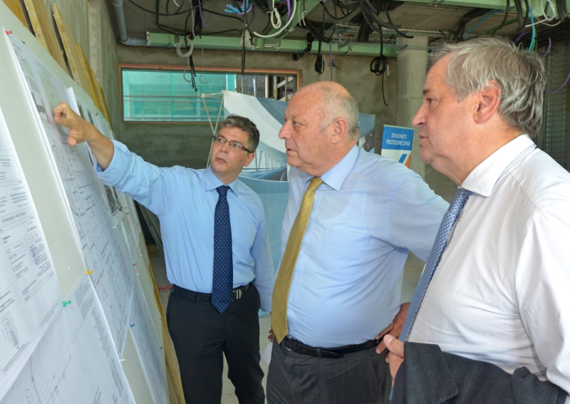 LPA - In einem Jahr wird das hydrographische Amt in den Sitz des Landeszivilschutzes an der Drususallee in Bozen ziehen, dort wird auch ein Landeswarnzentrum mit Rechenzentrum errichtet. Heute (20. Juni) haben Landeshauptmann Durnwalder und Bautenlandesrat Mussner die Baustelle besichtigt.