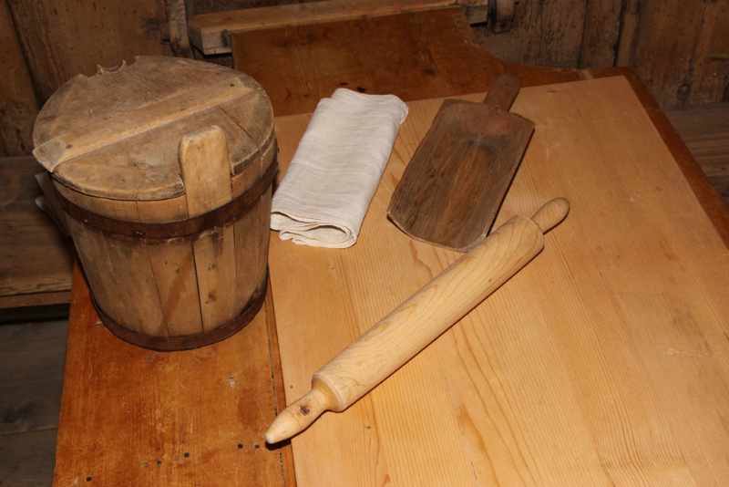 Den Besucherinnen und Besuchern wird die mühevolle, zeitaufwendige Arbeit zur Zubereitung von Speis und Trank anhand von original erhaltenen Gegenständen vor Augen geführt, darunter "Muespfonnen" (Pfannen zum Zubereiten vom traditionellen Mus), Triebl (Nudelholz), Heflstotz (Behälter aus Holz für den Sauerteig, der in keiner Küche fehlen durfte) und viele weitere. Die Geräte waren einfach, erforderten aber oft großen Arbeitsaufwand. Man war von den Erzeugnissen des eigenen Hofes abhängig, alles musste verwertet werden und Abfall gab es keinen. Dementsprechend karg und wenig abwechslungsreich war die Kost. Interessante Erzählungen von Zeitzeugen ergänzen die Ausstellung.