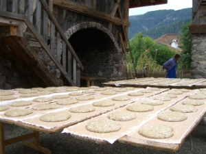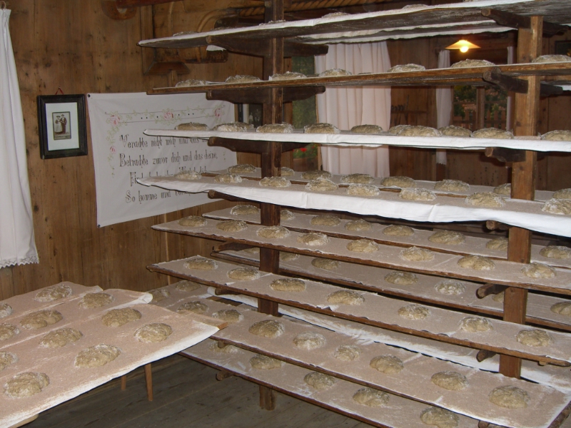 Um Korn zu sparen, wurde in früheren Zeiten am Bauernhof im Sarntal nur drei Mal im Jahr Brot gebacken, dafür aber in großen Mengen.