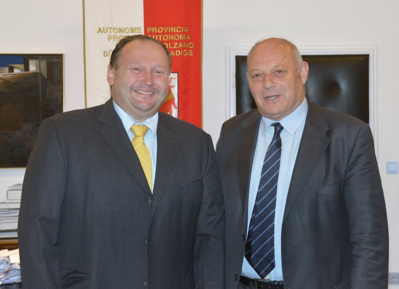 Markus Reiterer war auf Antrittsbesuch bei Landeshauptmann Durnwalder in Bozen. Der Österreicher ist seit 1. Juli Generalsekretär der Alpenkonvention und löste Marco Onida in dieser Funktion ab. Reiterer war zuvor im Kabinett des Exekutivsekretärs der internationalen Atomteststoppbehörde (CTBTO) tätig und vorher leitete er die politischen Abteilung an der österreichischen Botschaft in Washington D.C.. Reiterer spielte eine maßgebliche Rolle bei der Errichtung des ständigen Sekretariats der Alpenkonvention in Innsbruck mit Außenstelle in Bozen.