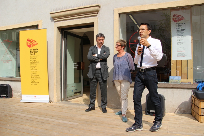 In zwei Wochen müssen Venedig und dessen Partnerländer im Nordosten Italiens demnach ihr Bewerbungsdossier um den Titel einer Europäischen Kulturhauptstadt 2019 einreichen. In Bozen nutzt man indes die Bewerbungsphase, um neue Kunst- und Kulturinitiativen zu lancieren und für eine bessere Vernetzung von Kunst und Wirtschaft zu sorgen. Eine der Initiativen in diesem Rahmen ist die Schaffung des "Atelier Europa" im Waaghaus am Bozner Kornplatz, "ein überaus innovatives Projekt, weil wir erstmals Raum zur Verfügung stellen, in dem zusammengearbeitet werden kann", so Tommasini bei der Eröffnung des Gemeinschaftsateliers. Gleichzeitig wird im Waaghaus auch ein Infopoint zur Kulturhauptstadt-Bewerbung eingerichtet.