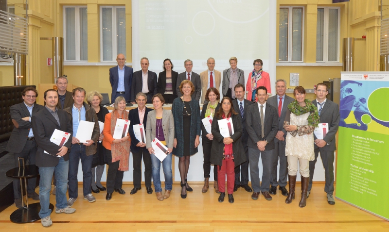 Von den 16 Projekten, für die heute im Bozner Palais Widmann der Fördervertrag übergeben wurde, sind neun an der Universität Innsbruck angesiedelt, drei an der Freien Universität Bozen, zwei an der Europäischen Akademie, einer an der Fachhochschule für Gesundheitsberufe und eines bei der Michael-Gaismair-Gesellschaft.
