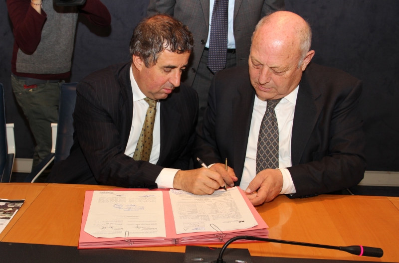 Zum Abschluss der Pressekonferenz haben Landeshauptmann Durnwalder und Bürgermeister Spagnolli ihre Unterschriften unter eine Vereinbarung zwischen Grundeigentümer Stadt und Bauherr Land gesetzt. Diese Vereinbarung gibt den symbolischen Startschuss zu den Bauarbeiten. Die Stadt Bozen tritt in der Übereinkunft dem Land ein zeitlich begrenztes Oberflächenrecht ab, solange die Liegenschaft als Bibliothek genutzt wird. Nach schlüsselfertiger Fertigstellung des Bauwerks überträgt das Land der Stadt Bozen ein im Grundbuch eingetragenes Nutzungsrecht auf der neu errichteten Oberflächenparzelle, auf der ein Drittel der gesamten Kubatur der Liegenschaft errichtet worden sind. Das Land errichtet seinerseits das gesamte Bauwerk und übernimmt sämtliche Kosten von der Projektierung über das Vergabeverfahren, der Errichtung des Gebäudes bis hin zu den technischen Abnahmen.