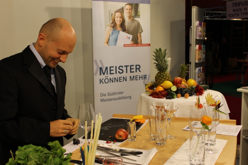 LPA - Das Landesamt für Meisterausbildung und die Koordinationsstelle für berufliche Weiterbildung der deutschen Berufsbildung haben auf der Hotelmesse 2013 in Bozen gemeinsam ihr Weiterbildungsangebot vorgestellt. Als Highlight präsentierte der weltweit bekannte Barkeeper Christian Heiss seine Cocktail-Dekorationen.