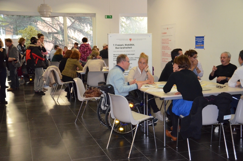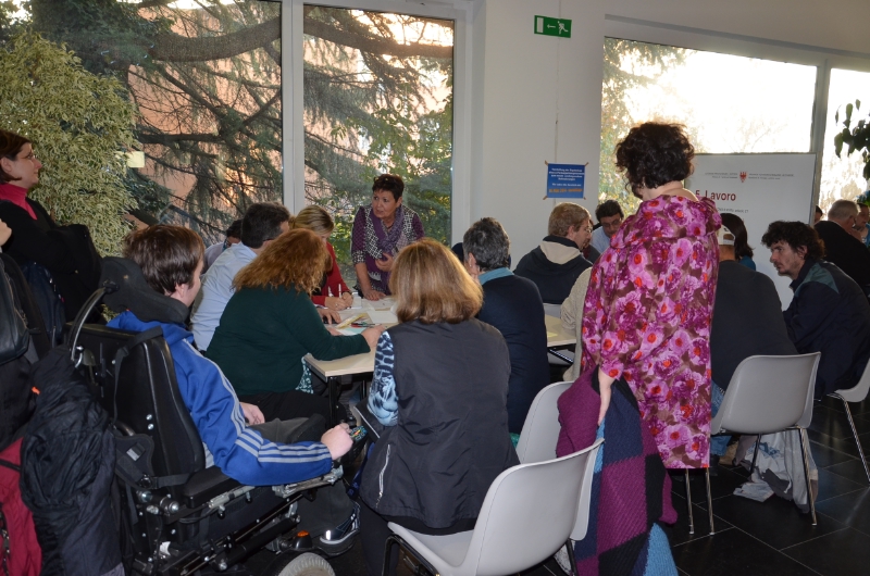 Gearbeitet wurde an neun Arbeitstischen zu den Themen Familie, Gesundheit, Schule und Ausbildung, Werkstätten und Tagesbegleitung, Arbeit, Wohnen, Freizeit-Mobilität-Barrierefreiheit, Inklusion und Diskriminierung sowie Teilhabe und Koordination. Jeder Arbeitstisch wurde jeweils von zwei Studentinnen und Studenten und unter der Gesamtleitung von Professorin Anna Aluffi Pentini von der Fakultät für Bildungswissenschaften der Universität Bozen und im Auftrag des Landesamtes für Menschen mit Behinderungen geleitet, zahlreiche Vorschläge zum neuen Gesetz wurden gesammelt. Vor allem die Bereiche Gesundheit, Wohnen und Arbeitseingliederung brennen den Betroffenen und ihren Angehörigen unter den Nägeln.
