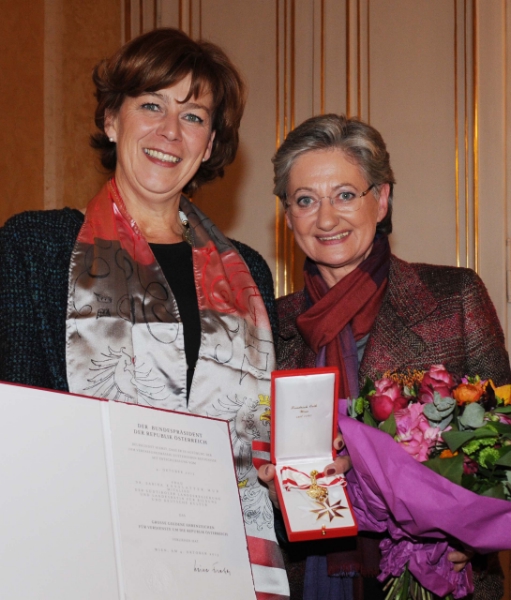 Das wichtigste Kennzeichen ihrer Kulturpolitik bestehe in der überzeugten Zusammenarbeit mit dem Bundesland Tirol und mit Österreich, um den gemeinsamen kulturellen Reichtum in die Gegenwart zu führen: Mit diesen Worten würdigte Laudator Marjan Cescutti den Einsatz von Landesrätin Sabina Kasslatter Mur, die heute (13. November) in Wien von Kulturministerin Claudia Schmied mit dem Großen Goldenen Ehrenzeichen für Verdienste um die Republik Österreich ausgezeichnet worden ist.