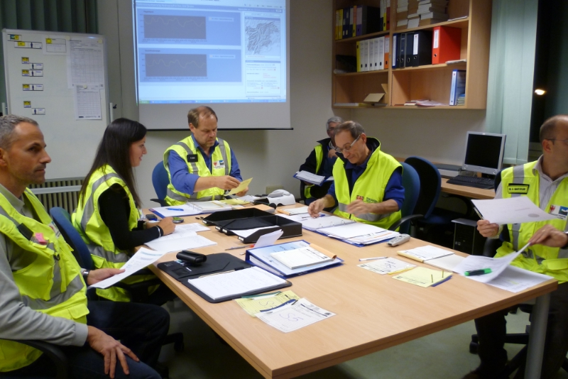 Bereits seit Jahren probt die Landesabteilung Wasserschutzbauten gemeinsam mit der Landesabteilung Brand- und Zivilschutz, der Berufsfeuerwehr, dem Hydrographischen Landesamt, dem Regierungskommissariat, den Ordnungskräften und den Freiwilligen Feuerwehren im Rahmen einer Hochwasserübung den Ernstfall an Etsch und Eisack. Am Freitag (15. November) war es wieder soweit: Nachdem die Pegelstände an Etsch und Eisack fiktiv die Vorwarnstufe erreicht hatten, wurden die Hochwasserzentrale der Landesabteilung Wasserschutzbauten, das Lagezentrum der Berufsfeuerwehr, die Bezirkseinsatzzentralen Meran, Vilpian, Neumarkt und Brixen sowie die Pegelmessstellen an den beiden Flüssen besetzt. Dabei gingen die Verantwortlichen strikt nach dem Alarm- und Einsatzplan vor. "Die Informationskette hat einwandfrei funktioniert," sagt Rudolf Pollinger, Direktor der Landesabteilung Wasserschutzbauten, der am Freitagabend als Beobachter im Einsatz war. Für die Landeseinsatzleitung während der Übung zeichnete Peter Egger verantwortlich.