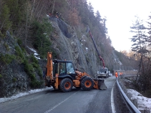 Derzeit wird an der Rutschungsstelle am Hang oberhalb der Staatsstraße ein rautenförmiges Netz installiert, das mit langen Felsnägeln befestigt wird. In einem zweiten Schritt sollen dann in den kommenden Tagen Panelle zur Sicherung der Rutschungsstelle angebracht werden. Auch ein weiteres Schutznetz ist laut Marini vorgesehen.