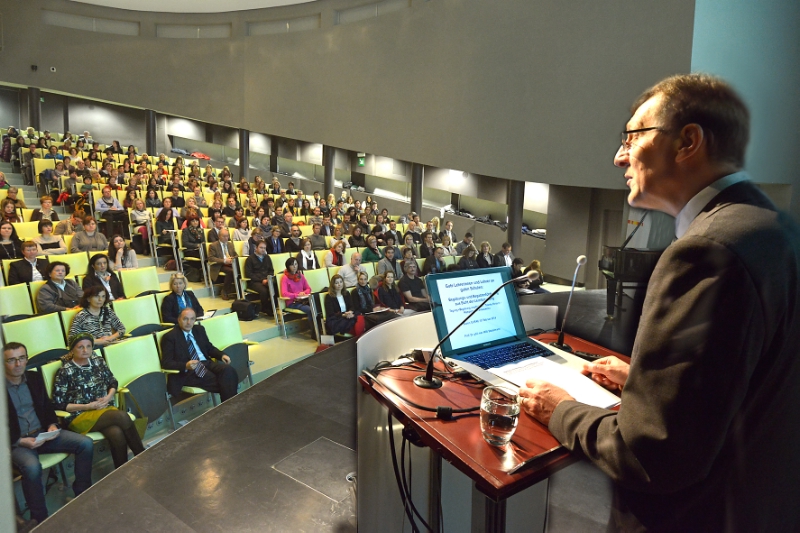 Albert Ziegler von der Universität Erlangen-Nürnberg ging darauf ein, wie sich die individuellen Lernressourcen begabter Schüler wahrnehmen und fördern lassen. Lernen gehe mit der Veränderung von Systemen einher. Es gehe darum, in Auseinandersetzung mit der Umwelt die eigenen Kapazitäten zu erhöhen. "Umwelt und Lernende müssen zusammenpassen. Es kann keine Begabtenförderung funktionieren, wenn eine Begabung da ist, aber das Umfeld nicht dazupasst", so Ziegler.