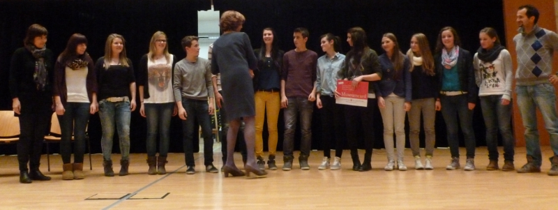 Die Klasse 3C VFM der Wirtschaftsfachoberschule Bruneck holte sich mit ihrer bebilderten Reportage zum Thema "Brasilien ist mehr als Fußball" den sensationellen dritten Platz und gewann 1000 Euro. Bereits aus Landeswettbewerb im November war die Klasse in ihrer Kategorie als Sieger hervor gegangen. Die dritte Klasse der Fachschule für Ernährung Frankenberg mit ihrer Ausstellung überzeugte zum Thema "Achtung, rechte Szene!" und gewann 250 Euro. "Ab in den Knast! Wie muss Strafe sein?" war ein weiteres vorgegebenes Thema, bei dem die dritte Klasse BWM der Bozner Wirtschaftsfachoberschule "Kunter" mit ihrem Radiofeature punktete und einen Buchpreis einfuhr.