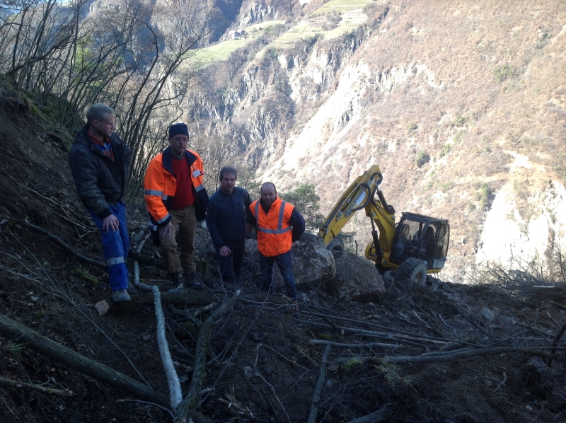 LPA - Mit einem Schreitbagger sind heute (24. Februar) Hangsicherungsarbeiten an der Landesstraße nach Völs am Schlern knapp einen halben Kilometer nach Blumau durchgeführt worden; wegen dieser Arbeiten bleibt die Straße bis zum Gasthof Faust auch in den kommenden Tagen einige Stunden täglich gesperrt.