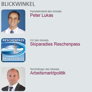 LPA - Sind Sie neugierig auf die Bewertung der Arbeitsmarktpolitik durch AFI-Direktor Stefan Perini? Waren Sie jemals grenzüberschreitend unterwegs im Euregio-Skiparadies Reschenpass? Wussten Sie, dass Peter Lukas aus Innsbruck einer der renommiertesten Experten für Strahlentherapie zur Krebsbehandlung ist? In jedem Fall finden Sie Informationen zu diesen drei Themen auf der Homepage der Europaregion unter www.europaregion.info/.
