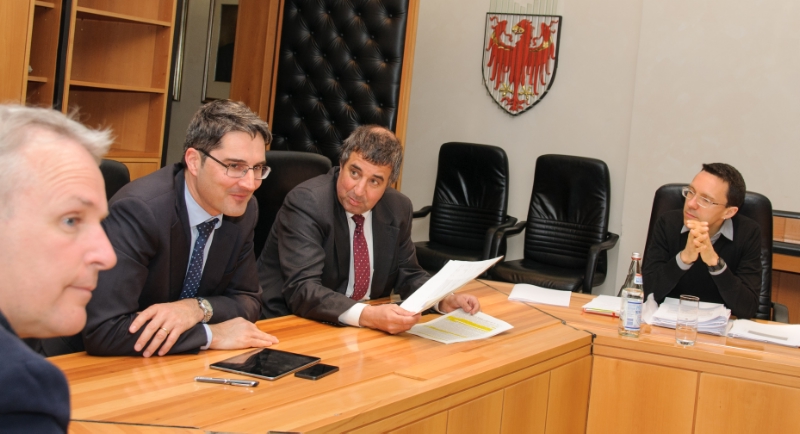 Die Koordinierungsgruppe zwischen Land und Landeshauptstadt ist schon im Koalitionsabkommen vorgesehen und heute zum ersten Mal im Palais Widmann zusammen gekommen. Sie soll sporadische Treffen ersetzen und regelmäßig tagen, um die wichtigsten Themen, die Bozen betreffen, zu besprechen. Dabei waren heute neben Landeshauptmann und Bürgermeister deren Stellvertreter (Christian Tommasini und Klaus Ladinser) sowie die Landesräte Arnold Schuler und Philipp Achammer: "Wir wollen sicherstellen, dass die relevanten Informationen zwischen den beiden Regierungen stetig fließen, damit Land und Stadt rechtzeitig die notwendigen politischen Entscheidungen treffen können", so Landeshauptmann Kompatscher heute im Anschluss an das Treffen.