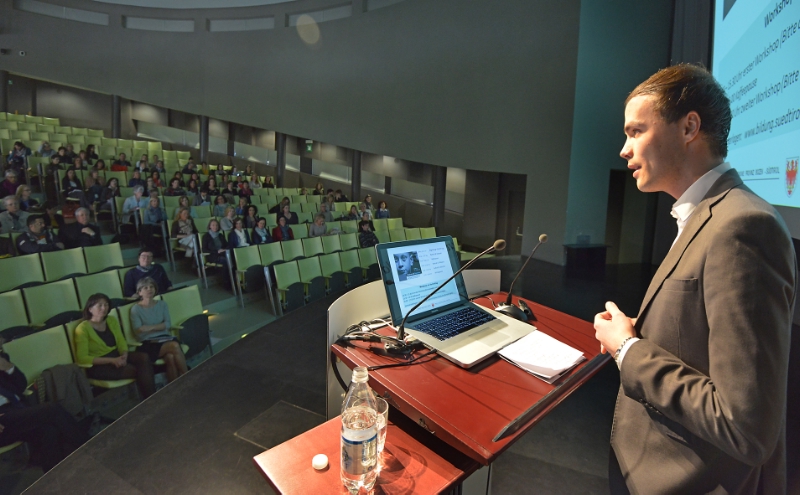 Am Nachmittag werden die Referentinnen im Rahmen von Workshops Einblick in Praxisbeispiele und Unterrichtsmaterialien geben. Stephanie Risse von der Freien Universität Bozen stellt authentische Dialoge aus dem sprachlichen Alltag Südtirols vor und lädt zur Diskussion über einen möglichen Einsatz dieses Sprachmaterials im Unterricht ein. Wolfgang Burger, Priska Neulichedl und Christian Irenberger stellen Best-practice-Beispiele aus ihrem Unterrichtsalltag vor.