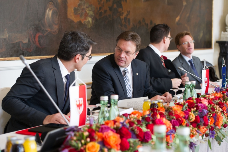 Die erste Sitzung von Vorstand und Versammlung des Europäischen Verbunds territorialer Zusammenarbeit (EVTZ) unter Leitung von Landeshauptmann Günther Platter war auch jene, in der es um die Festlegung der Arbeitsschwerpunkte für das laufende Jahr ging. Mit Landeshauptmann Arno Kompatscher und dem Trentiner Landeshauptmann-Stellvertreter Alessandro Olivi ging es dabei um zweierlei: "Es geht um Leuchtturmprojekte in den für alle drei Länder gleichermaßen wichtigen Bereichen, etwa in Verkehr, Energie, Wirtschaft oder Bildung, es geht aber auch darum, alltägliche Hürden aus dem Weg zu schaffen", so Landeshauptmann Kompatscher im Anschluss an die Sitzung.