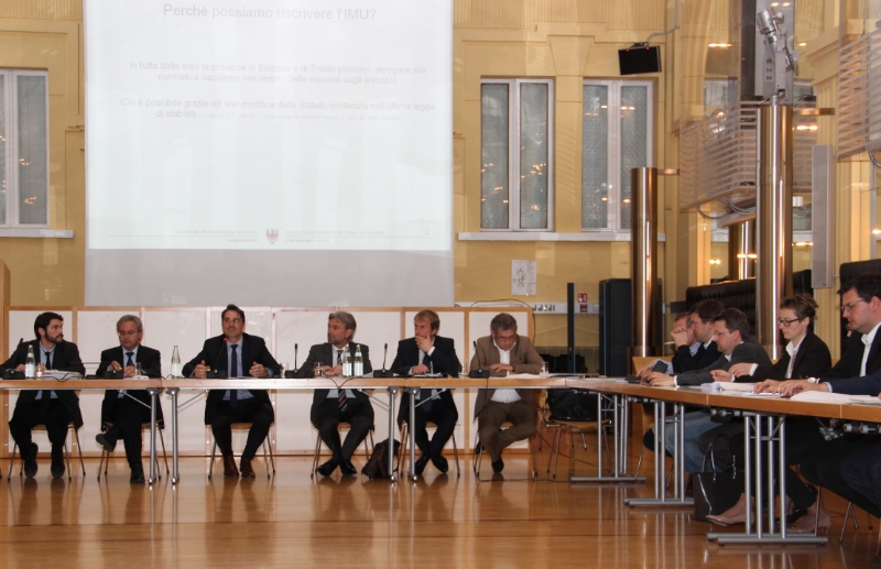 Flankiert von Gemeinden-Landesrat Arnold Schuler und dem Präsidenten des Gemeindenverbands, Andreas Schatzer, hat Kompatscher den Vertretern der Sozialpartner die Neuregelung der Gemeindeimmobiliensteuer erläutert und zunächst betont, dass diese ein Novum sei: "Zum ersten Mal können wir die Immobiliensteuer autonom und damit unabhängig vom Staat regeln", so der Landeshauptmann, der zudem unterstrichen hat, dass die GIS keine zusätzliche Steuer sei, sondern die IMU und die von Rom auf den Weg gebrachte TASI ersetze. Deshalb wird Steuerzahlern und Steuerbeistandszentren geraten, die neue GIS abzuwarten und die erste IMU-Rate nicht zu zahlen.