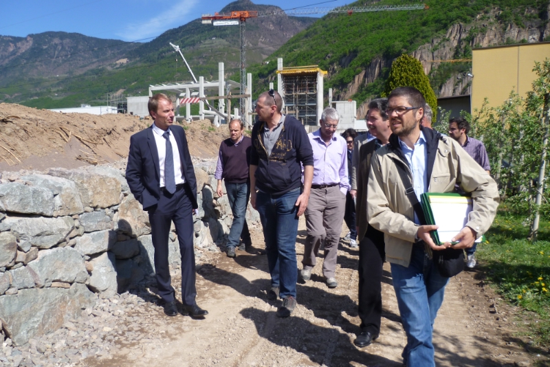 LPA - Am Hochwasserstützpunkt in Sigmundskron und an der Baustelle am Eisack im Süden Bozens hat sich Landesrat Schuler gestern (9. April) bei einem Lokalaugenschein mit Gemeindevertretern und Technikern ein Bild von der Lage der Bauarbeiten verschafft, die derzeit durchgeführt werden.