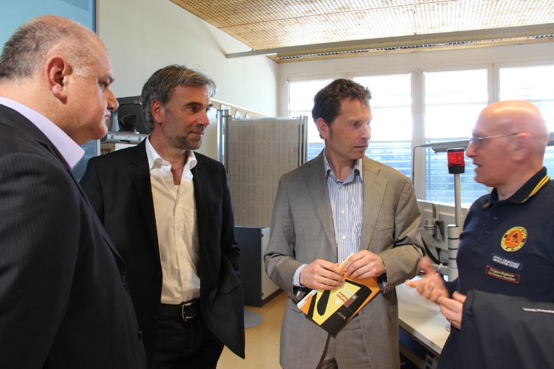 "Eine schnelle und sichere Information in Katastrophenfällen", erklärt Zivilschutzlandesrat Schuler, "wird nun durch dieses modernisierte Bevölkerungsinformationssystem ermöglicht, neue satellitenunterstützte Breitbandverbindungen garantieren eine reibungslose Datenübertragung zwischen Landeszivilschutz und zwanzig Radiosendern in Südtirol". Im Sitz der Verkehrsmeldezentrale im Zivilschutzturm an der Bozner Drususallee erkundigte sich der Regionalassessor des Veneto Daniele Stival mit der obersten Zivilschutzvertretung seiner Region über diese modernisierte Datenübertragung: Zivilschutzdirektor Roberto Tonellato und der Leiter der Einsatzzentrale Roberto Taranta wurden von Abteilungsdirektor Hanspeter Staffler und Amtsdirektor Günther Walcher über den Zivilschutz in Südtirol informiert. Alle vier Jahre, führte Abteilungsdirektor Staffler aus, wird eine Zivilschutzübung durchgeführt; eine Befragung der Bevölkerung hat ergeben, dass dies positiv wahrgenommen wird, die Bürgerinnen und Bürger werden auch über Broschüren und Zeitungsbeilagen informiert. In Bozen, Brixen, Bruneck, Meran und Leifers wird ein Pilotprojekt erprobt, das neben der Alarmierung durch Sirenen die Ausstrahlung einer Lautsprecherbotschaft vorsieht. Über den Ankauf des neuen Informationssystems um 213.000 Euro gaben Projektmitarbeiter Heimo Delazer und Karin Ainhauser Auskunft. Mario Baratto und Roberto Spalaor von der Firma Digiland mit Sitz in Padua, die gemeinsam mit Telespazio die europaweite Ausschreibung gewonnen hat, ermöglichten Einblicke in technische Details.