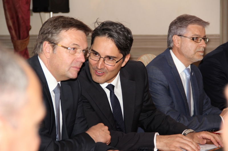 Viel Prominenz aus Medien und Politik - darunter die beiden Landeshauptleute Arno Kompatscher und Günther Platter sowie die Landesräte Philipp Achammer, Waltraud Deeg, Florian Mussner und Martha Stocker - war heute im Merkantilgebäude zusammengekommen. Kein Wunder, galt es doch, die Rundfunkverträge zu feiern, mit denen vor 40 Jahren sichergestellt wurde, dass die Fernseh- und Radioprogramme von ARD, ZDF, ORF und SRG kostenlos auch in Südtirol verbreitet werden konnten. "Das waren Verträge, deren Bedeutung man im Nachhinein nicht hoch genug einschätzen kann", so Landeshauptmann Kompatscher.