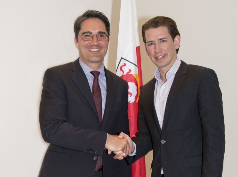 Landeshauptmann Kompatscher informierte den Außenminister über den Stand der Verhandlungen mit Rom und betonte, dass die Südtiroler Landesregierung sich unter seiner Führung bemühe, sowohl die Regierung in Rom, als auch die anderen Regionen zu überzeugen, dass die aktuelle Reform der italienischen Verfassung nicht auf Kosten der autonomen Länder bzw. Regionen erfolgen dürfe, sondern im Gegenteil die Vorteile der Selbstverwaltung auf alle Regionen übertragen müsse: "Es geht uns nicht darum, die autonomen Regionen 'normaler' zu machen, sondern die 'normalen' autonomer. Südtirol strebt gemeinsam mit dem Trentino und den autonomen Regionen Norditaliens eine Neuregelung der Finanzbeziehungen an, die Stabilität, Klarheit und Planbarkeit gewährleistet." Weitere Themen in den Verhandlungen mit der Regierung in Rom seien neben der Verfassungsreform und der Finanzautonomie der Brennerbasistunnel, dessen Zulaufstrecken und die Auteilung der EU-Gelder für Landwirtschaft sowie die regionale Entwicklung. Apropos Brennerbasistunnel: Für Kurz ist der Tunnel ein Infrastrukturprojekt, dem höchste Priorität eingeräumt werden müsse, weil damit eine der wichtigsten europäischen Verkehrsachsen den Anforderungen der Zukunft angepasst und wesentlich die Lebensqualität der Menschen - nördlich und südlich des Brenners - verbessert werde.