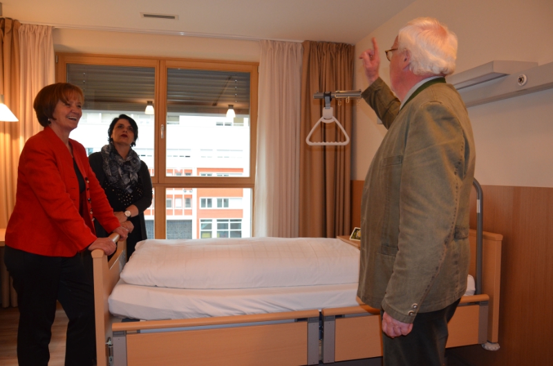 Landesrätin Stocker nutze beim Rundgang die Gelegenheit, mit einigen Heimbewohner zu sprechen. Sie zeigte sich besonders erfreut über das angenehme Ambiente im Gebäude und vor allem über den kleinen Garten mitten in der Stadt und die Dachterrasse mit Sicht bis zum Rosengarten. „Das Vinzenzhaus, wie das Seniorenheim kurz genannt wird, ist sicher ein gelungenes Beispiel, wie die Partnerschaft zwischen privaten Finanzgebern und der öffentlichen Hand im Sozialbereich funktionieren kann und in Zukunft noch öfter funktionieren sollte", sagte Stocker.
