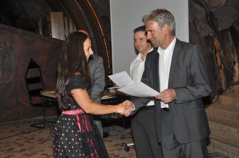 LPA - 31 Kräuteranbauern, 26 Jungbauern und 22 Absolventen des Ausbildungslehrganges "Power-Bauer 40+" hat Landwirtschaftlandesrat Schuler gestern (20. Mai) Abend im Felsenkeller der Laimburg ihre Teilnahmebestätigungen überreicht.