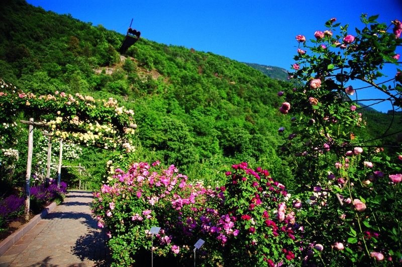 Ein Blütenmeer und ein abwechlungsreiches Veranstaltungsprogramm kennzeichnen in diesen Wochen die Gärten von Schloss Trauttmansdorff, die zum "Internationalen Garten des Jahres 2013" gekürt wurden: Der Rosengarten erstrahlt in allen Farben, Staudenpfingstrosen in weißen, rosafarbenen bis roten Farbtönen und in einer Vielzahl an Blütenformen überziehen den Hang. Kletterrosen wuchern auf den Pergolen, englische Rosen und Sternjasmin duften um die Wette. Salbei, Sonnenhut, Euphorbien, Nelkenwurz, Geranium und Nelken zeigen sich in voller Pracht. Im Palmenwald steht schwarzblättriger Sauerklee neben leuchtend grünen Funkien und Rodgersien. Bunte Blütensträucher wie Sommerflieder, Stewartie und Escallonia verbinden die Frühlingsblüte nahtlos mit dem Sommer. Die Kerzen-Palmlilie (Yucca) und die reichblühende pinkfarbene Bougainvillea ziehen alle Blicke auf sich.