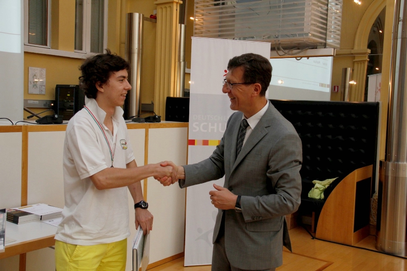 Die Medaillen erhielten beide Schüler heute in Bozen von Schulamtsleiter Peter Höllrigl umgehängt. Bei der Siegerehrung in Cesenatico konnten die beiden Schüler aus organisatorischen Gründen nicht teilnehmen. Die Freude des Schulamtsleiter war um so größer, die beiden Medaillengewinner persönlich in Bozen auszeichnen zu dürfen. Höllrigl lobte die herausragende Leistung der beiden Schüler, die auch auf nationaler Ebene ihr Können bewiesen haben.