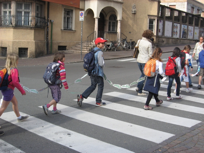 Die Aktion "KlimaSchritte" der Landesagentur für Umwelt regt Kinder und Eltern dazu an, den Schulweg auf umweltfreundliche Art und Weise zurückzulegen. Im vergangenen Schuljahr haben die teilnehmenden Schüler vier Wochen lang Klimaschritte in Form von grünen Aufklebern auf ihre Sammelpässe geklebt: für jeden Tag, an dem sie zu Fuß, mit dem Fahrrad, dem Roller oder dem Bus zur Schule gekommen sind. So wurden innerhalb von vier Wochen südtirolweit 32.283 Klimaschritte gesammelt und 67.962 Kilometer autofrei bewältigt. Ein durchschnittlicher Mittelklassewagen würde für diese Distanz rund acht Tonnen Kohlendioxid ausstoßen. „Die Aktion ist ein aktiver Beitrag zum Klimaschutz, denn weniger Autoverkehr im Umkreis von Schulen bedeutet auch weniger Lärm, bessere Luft und mehr Sicherheit für Fußgänger und Radfahrer", so der Landesrat für Raumentwicklung, Umwelt und Energie, Richard Theiner.