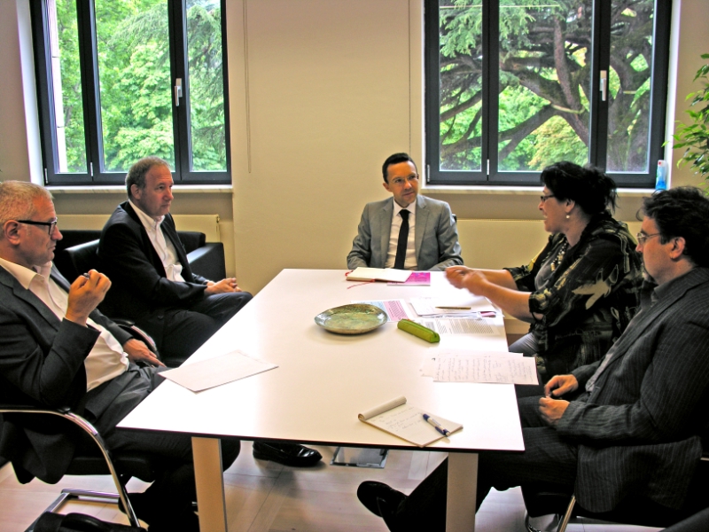 Für eine Schulausbildung, die Wirtschaft und Arbeitsmarkt nicht aus dem Blickfeld verliert und unternehmerisches Denken stärkt, haben sich heute der italienische Schullandesrat Christian Tommasini und der Präsident des Unternehmerverbands Stefan Pan ausgesprochen. Bei einem Gespräch, an dem auch die italienische Schulamtsleiterin Nicoletta Minnei, Schulinspektor Andrea Felis und der Direktor des Unternehmerverbands, Josef Negri, teilnahmen, ging es vor allem um die Zusammenarbeit zwischen Schule und Unternehmen. Gesprochen wurde auch über die Berufsbildung und die Berufsmatura und die höhere Lehre.