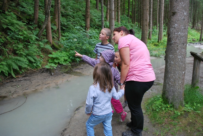 Auf dem Wanderweg laden verschiedene Erlebnisstationen dazu ein, die Natur und Umgebung im Wald zu hören, zu riechen, zu sehen und zu fühlen. Während die Kinder den Wanderweg erkunden, können die Erwachsenen das Schloss besichtigen.