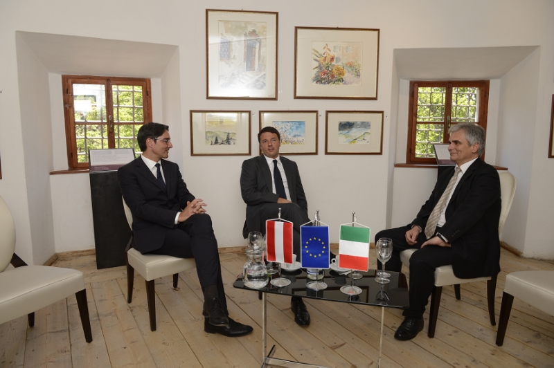 Diesen Ausführungen stimmte Premierminister Matteo Renzi vollinhaltlich zu. "Diese Tagung zwingt uns aber, über zwei Faktoren nachzudenken: über Zeit und Raum", so Renzi. Der Faktor Zeit sei in der heutigen Politik einer totalen Gegenwart gewichen, "Wir müssen aber auch einmal einen Blick in die Vergangenheit werfen: vor hundert Jahren wurde hier gekämpft, es wurden Schützengräben gebaut und keine Eisenbahntunnels", so der Premier, der ergänzte: "Wenn wir an der Zukunft bauen wollen, dann dürfen wir weder in der Vergangenheit, noch in der Gegenwart stecken bleiben." Die räumliche Dimension werde einerseits durch ein stetig wachsendes Europa, andererseits durch Abspaltungstendenzen bestimmter Regionen bestimmt. "Dieser Teil Europas ist ein Vorbild für ganz Europa", so Renzi. Hier werde Europa als Chance wahrgenommen und nicht als Hindernis. Erfolgreiche Strategien dieser Vorbilder seien zu kopieren, so der Premier, der die Infrastrukturpolitik ebenso als Beispiel nannte, wie die duale Ausbildung.