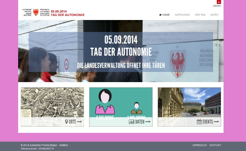 Am 5. September, dem Tag der Autonomie, gibt's in diesem Jahr eine besondere Initiative: einen Tag der offenen Tür, bei dem sich alle Interessierten ein Bild von der Arbeit in Landtag und Landhäusern machen können. Die Website zum Tag der Autonomie mit allen Infos zur Autonomie, zu deren Verwaltung und zum Tag der offenen Tür ist nun online.
