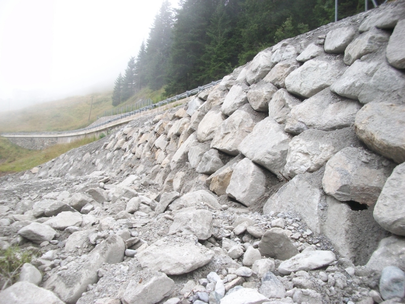 Tags darauf wurde mit der Wiederherstellung der Mauer mit Zyklopensteinen und Beton unterhalb der Straße begonnen. Während der Arbeiten blieb die Straße einspurig befahrbar. "Knapp eine Woche später", erklärt der Direktor der Landesabteilung Wasserschutzbauten Rudolf Pollinger, "konnten die Arbeiten abgeschlossen werden, dank der ausgezeichneten Zusammenarbeit mit dem Straßendienst Vinschgau, dem Landesamt für Geologie und Baustoffprüfung und der Gemeinde Stilfs".