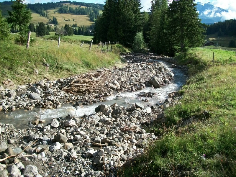Wasserschutzbauten: Sofortmaßnahme am Saltriabach nach Unwetterschäden