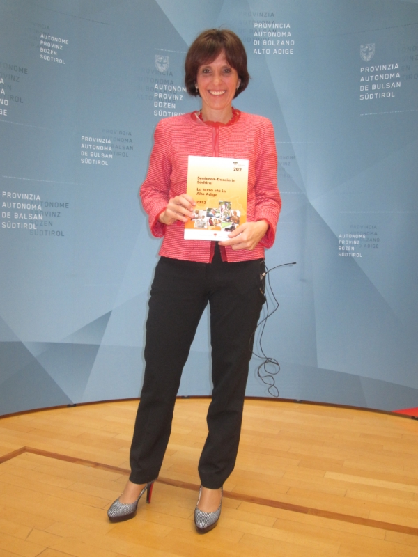 Pünktlich zum Weltseniorentag am 1. Oktober hat das Landesstatistikinstitut ASTAT seine Studie über das "Senioren-Dasein 2013" fertiggestellt. Vorgestellt wurde sie heute im Beisein der für das ASTAT zuständigen Landesrätin Waltraud Deeg und der Landesrätin für Gesundheit und Soziales, Martha Stocker, gemeinsam mit ASTAT-Direktorin Johanna Plasinger und der Direktorin im Amt für Senioren und Sozialsprengel, Brigitte Waldner.