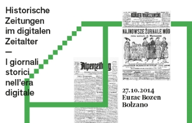 Die Tagung "Historische Zeitungen im digitalen Zeitalter" an der Europäischen Akademie Eurac in Bozen beginnt am Montag, dem 27. Oktober, um 9.00 Uhr und dauert bis 16.00 Uhr. Die Teilnahme ist kostenlos, eine Anmeldung wegen der begrenzten Teilnehmerzahl erforderlich, und zwar innerhalb Freitag, 17. Oktober, an historicalnewspapers@tessmann.it