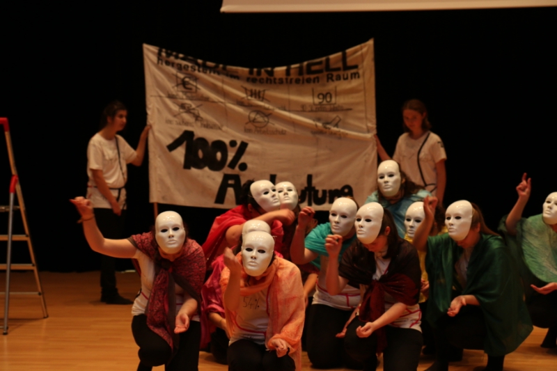 Im Publikum mit dabei waren Bildungslandesrat Philipp Achammer und die beiden Schulamtsleiter Peter Höllrigl und Roland Verra. Auf der Bühne drehte sich am Politiknachmittag alles um aktuelle Themen. "Billige T-Shirts" war das meist gewählte Projektthema und wurde von den verschiedenen Klassen jeweils unterschiedlich gestaltet. Allen am Wettbewerb teilnehmenden Klassen waren jedoch der kritische Geist, die Auseinandersetzung mit Themen "die uns alle was angehen" und "der Blick hinter die Kulissen" gemeinsam.