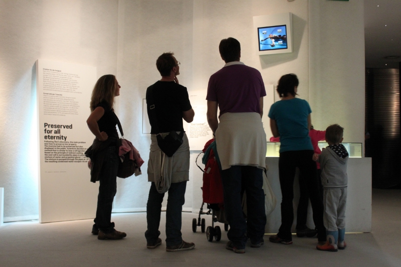 Besucher im Ötzi-Museum. Foto: SLM/Prast.Der Klimawandel hat auch eine archäologische Seite. Er bringt zu Tage, was für lange Zeit im Gletschereis verborgen war. Ötzi ist nicht der einzige Glücksfund der letzten Jahrzehnte. Viele weitere Objekte sind aufgetaut und erzählen uns spannende Geschichten aus der Vergangenheit. Und mit jedem neuen Fund stellt sich die Frage: Was trieb die Menschen über Jahrtausende auf die Gletscher? Diese Frage will die Sonderausstellung „Frozen Stories – Gletscherfunde aus den Alpen“ beantworten, die auch am (normalerweise geschlossenen) Montag, 5. Jänner, besucht werden kann.