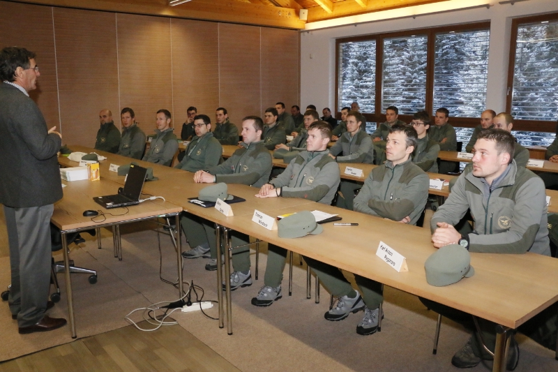 Der Dienstsitz für die 25 Förster ist während der kommenden drei Monate die Forstschule Latemar oberhalb von Welschnofen, wo sie auch untergebracht sind; Leiter der Forstschule ist Marco Pietrogiovanna und Kursbegleiter Bernd Pardeller. Die Kursteilnehmer kommen aus ganz Südtirol, von Forststationen zwischen Graun und Sexten, Sterzing und Kaltenbrunn und tragen während des Kurses ihre Dienstkleidung. Sie haben - bis auf eine Ausnahme - bereits einen sechsmonatigen Grundkurs hinter sich und sind seit bis zu 20 Jahren im Forstdienst. Aus rund 120 Interessenten wurden sie nach einer Zugangsprüfung für diesen internen Aufstiegskurs ausgewählt. Unter den 20 Referenten finden sich Experten der Landesabteilung Forstwirtschaft wie auch des Umwelt-Ressorts, eine Kommunikationsexpertin wie auch zwei Staatsanwälte. Ziel des Kurses, erklärt Abteilungsdirektor Paul Profanter, ist die Qualifizierung zum Försteroffizier, als höherer Amtsträger der Gerichtspolizei. Eine Einführung in den neuen Abschnitt ihrer beruflichen Laufbahn haben die 25 Männer heute vom Weiterbildungsreferenten der Abteilung Paul Zipperle erhalten. Begonnen wird mit einer schwerpunktmäßigen Wiederholung und Vertiefung des Grundkurses. Dann werden Fächer wie Forstplanung und Kartographie gelehrt, Forst- und Landschaftsschutz stehen ebenso auf dem Programm wie Fisch- und Wildbestand, aber auch Arbeitsorganisation und Mitarbeiterführung, Informationstechnologie und Strafrecht. Nach drei Monaten wird der Kurs mit einer schriftlichen und mündlichen Prüfung abgeschlossen, die Absolventen erhalten den Grad eines Unteroffiziers und sind vorbereitet auf eine Aufgabe als Forststationsleiter.