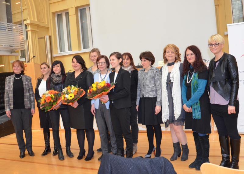 Den mit 2500 Euro dotierten zweiten Preis bekam Julia Ganterer mit der Diplomarbeit „Habitus - Moral - Sozialer Zwang: Der Prozess des Ver- und Erkennens durch die doxische Verschleierung der Geschlechterverhältnisse". Sie gehe in ihrer Arbeit der Geschlechter-Ungerechtigkeit konsequent nach und arbeite Veränderungsstrategien heraus, unterstrich Helga Innerhofer in der Laudatio.