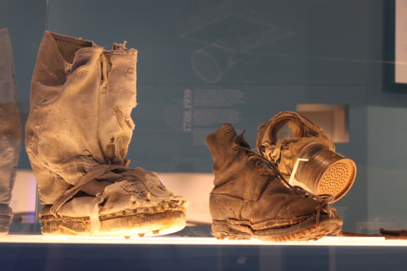 Von den harten Überlebensbedingungen der Soldaten an der Ortlerfront berichten Funde der österreichisch-ungarischen und der italienischen Armee aus dem Ersten Weltkrieg. Schuhe, Überschuhe, Socken, Handschuhe, Gasmasken der Soldaten sowie Konservendosen und Papierrollen zum Kochen zeigen, was es bedeutete, selbst zu überleben und dann noch die jeweilige Grenze zu verteidigen.