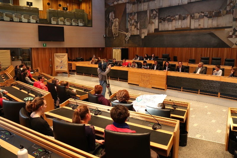 Nicht die Landtagsabgeordneten waren heute (13. Februar) die Hauptdarsteller im Plenarsaal des Südtiroler Landtages, sondern Kinder und Jugendliche im Alter von elf bis 14 Jahren. Beim von der Jungschar organisierten ersten Südtiroler Kinderlandtag konnten Kindern und Jugendliche ihre Meinungen, Wünsche, Forderungen, Gedanken und Erfahrungen einbringen. „Kinder und Jugendliche zu beteiligen bedeutet, dass sie bei den verschiedenen Entscheidungen, die ihr Lebensumfeld betreffen, aktiv mitreden und mitgestalten, aber auch mitbestimmen können“, so der für Jugendarbeit zuständige Landesrat Achammer.
