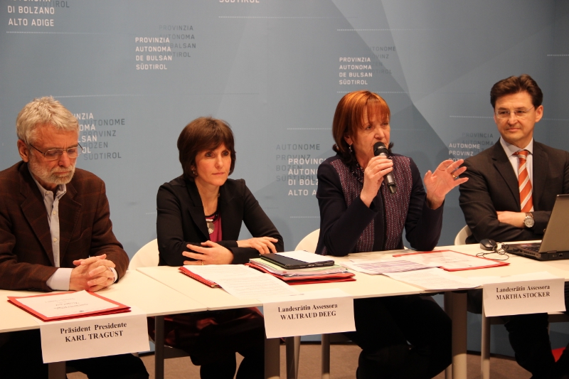 Die Agentur für soziale und wirtschaftliche Entwicklung (ASWE) hat 2014 insgesamt 322 Millionen Euro an Transferleistungen wie Pflegegeld, Vorsorgeleistungen und Familiengeld ausbezahlt. Bei einer Medienkonferenz am heutigen Mittwoch (11. März) haben Landesrätin Martha Stocker, Landesrätin Waltraud Deeg, Präsident Karl Tragust und Direktor Eugenio Bizzotto Bilanz über die Tätigkeit gezogen.