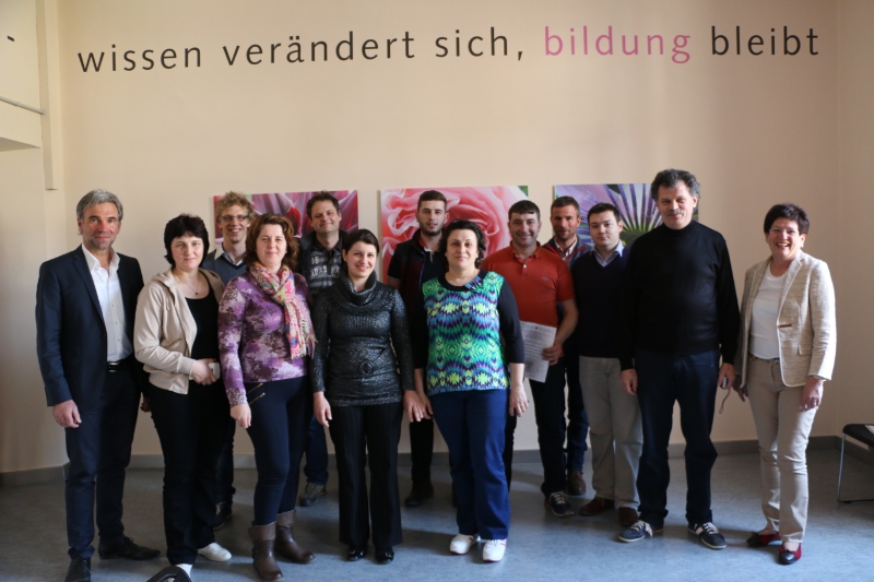 In der handwerklichen Milchverarbeitung haben sich vier Männer und vier Frauen aus dem Nordosten Rumäniens eine Woche lang an der Fachschule Salern weitergebildet und zum Abschluss eine Teilnahmebestätigung aus den Händen von Agrarlandesrat Schuler erhalten.