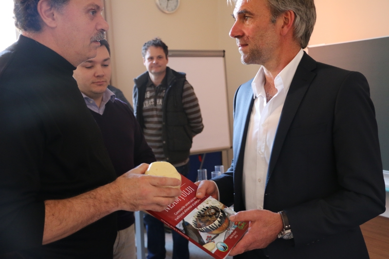 Einen "Cascaval" nach einem Rezept seiner Heimat überreichte Vasile Avadanei dem Landesrat und brachte auch damit die Verwandtschaft der rumänischen mit der italienischen Sprache zum Ausdruck. Er habe wieder viel dazugelernt, unterstrich Avadanei, der an allen Kursen in Südtirol teilgenommen hat. Erfreut über die Weiterführung der Partnerschaft äußerte sich Landesrat Arnold Schuler: Besonders beeindruckt, führte er bei der Feierstunde an der Fachschule für Hauswirtschaft und Ernährung Haslach aus, sei er bei seinem Besuch vor etwa einem Jahr in Rumänien von dem Markt mit Produktverkostung gewesen.