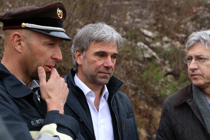 Er sei gerade fünf Tage Mitglied der Landesregierung gewesen, blickte Arnold Schuler auf seinen ersten Einsatz als Zivilschutzlandesrat zurück, als sich am 21. Jänner 2014 dreitausend Kubikmeter Material von den Grauner Wänden oberhalb von Tramin lösten und zu Tal donnerten. Heute (26. März) begutachtete er mit Vertretern der Forstbehörde, Feuerwehr und Gemeinden die neuen Steinschlagschutzwände.